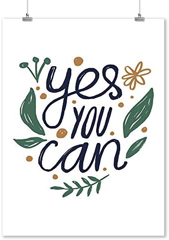 Amazon Com Inspirational Quote Hand Lettering With Leaves Yes You Can 9012022 9x12 Art Print Wall Decor Travel Poster Wall Art