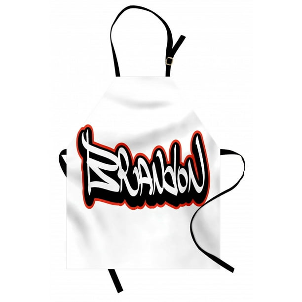 Brandon Apron Urban Street Culture Hip Hop Theme Lettering Individual Name Design Unisex Kitchen Bib Apron With Adjustable Neck For Cooking Baking Gardening Vermilion Black And White By Ambesonne Walmart Com Walmart Com