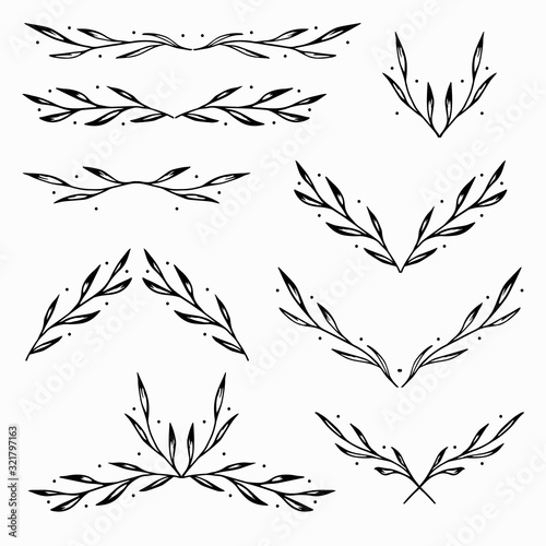 Set Of Simple Outline Twigs Hand Drawn Elements For The Design Of Calligraphy Cards Certificates Invitations Tattoo Logo Stock Vector Doodle Illustration Isolated On Transparent Background Stock Vector Adobe Stock