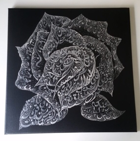 Black And Silver Arabic Calligraphy Rose Canvas With Etsy