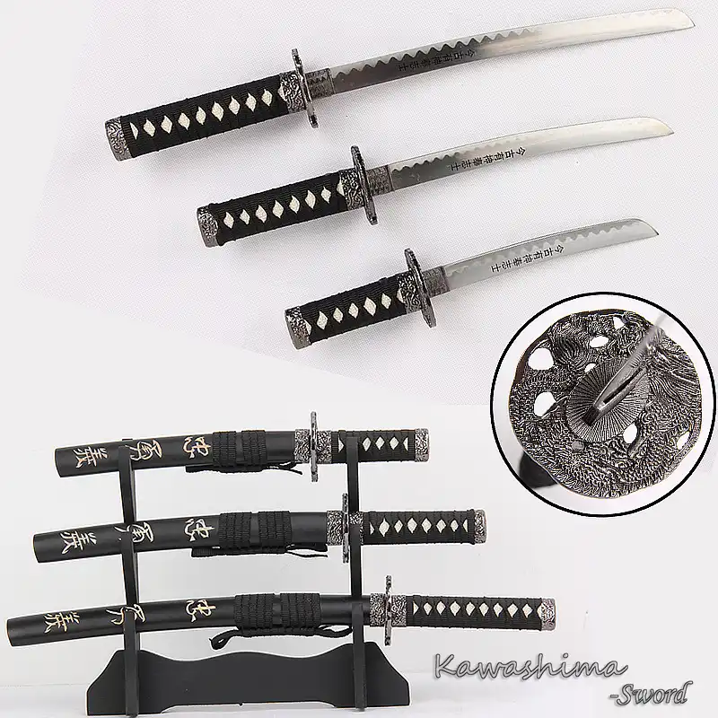 Bushido Musashi 3pcs Set Mini Swords With Wooden Stand Carbon Steel Replica Movie The Last Samurai Letter Opener Sword Sword Sword Setsword Mini Aliexpress
