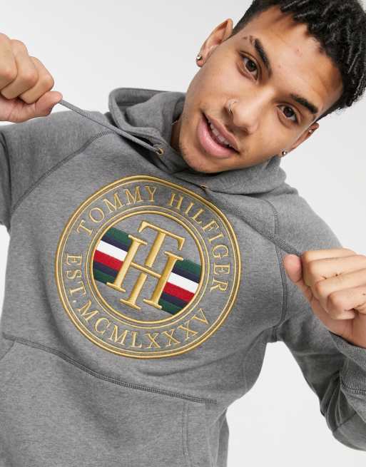 Tommy Hilfiger Icon Circle Logo Hoodie In Dark Gray Heather Asos