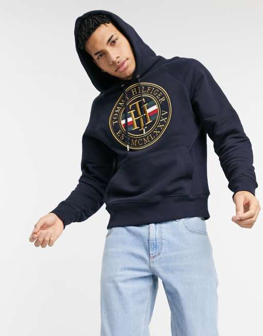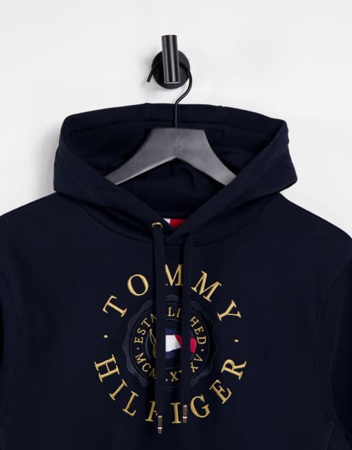 Tommy Hilfiger Icon Coin Logo Embroidery Hoodie In Desert Sky Navy Asos