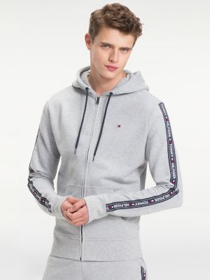 Tommy Hilfiger Icon Stripe Logo Print Hoodie In Gray Marl Hoodie Print Hoodies Tommy Hilfiger